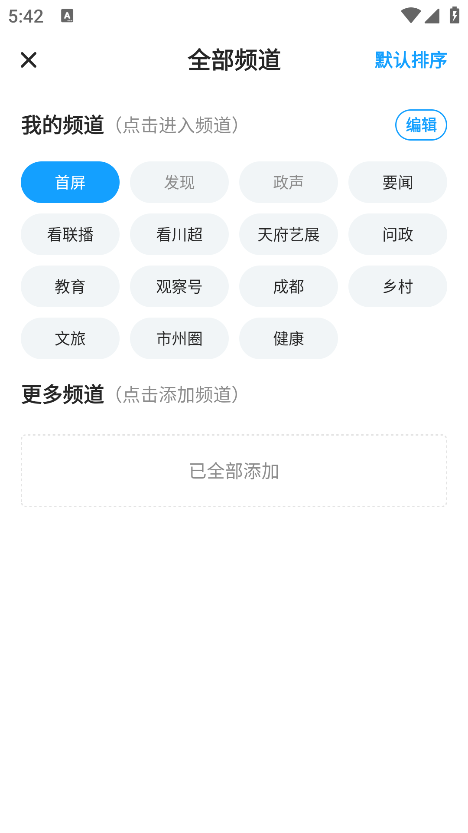 2. 点击右上角的方块图标,能够查看全部新闻频道列表。
