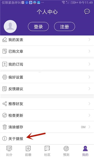 在个人中心选择“关于捷报”这一选项