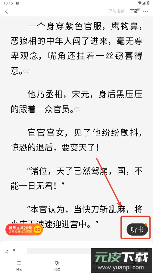 2. 在阅读页面点击屏幕,右下角会显示听书按钮。