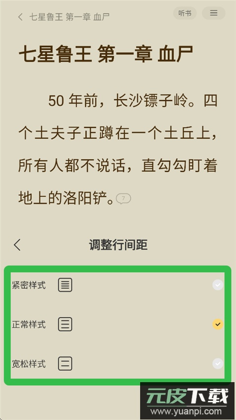 4. 系统提供紧密、正常与宽松三种样式,你可以根据个人阅读习惯自由选择。