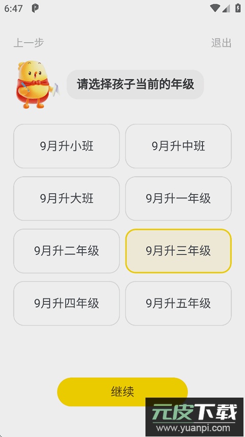 1、打开叫叫App,根据提示选择孩子所在年级等学前信息,这一步也可以跳过;