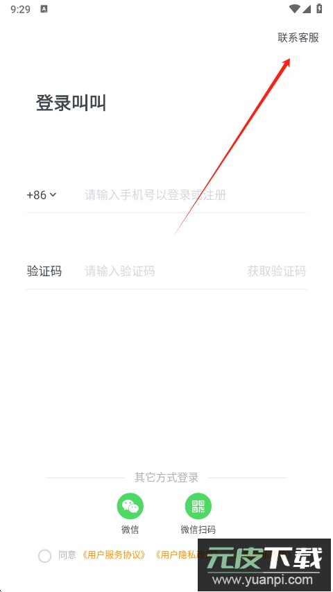 1、在首页右上角设有登录入口,旁边有联系客服的按钮可供点击;
