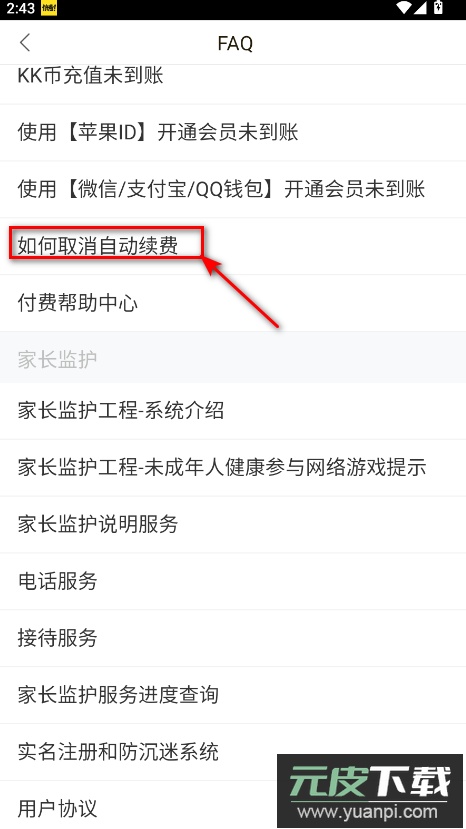 3.在帮助中心内查找如何取消自动续费