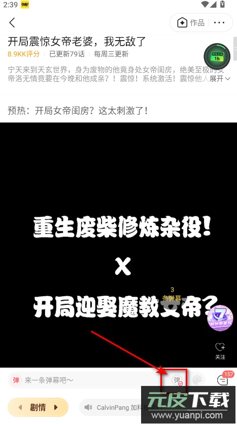 2.在阅读页面中找到弹幕开关,可自由开启或关闭