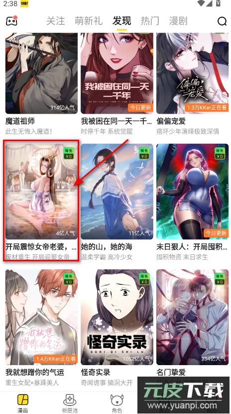 1.选择一本漫画进入阅读界面