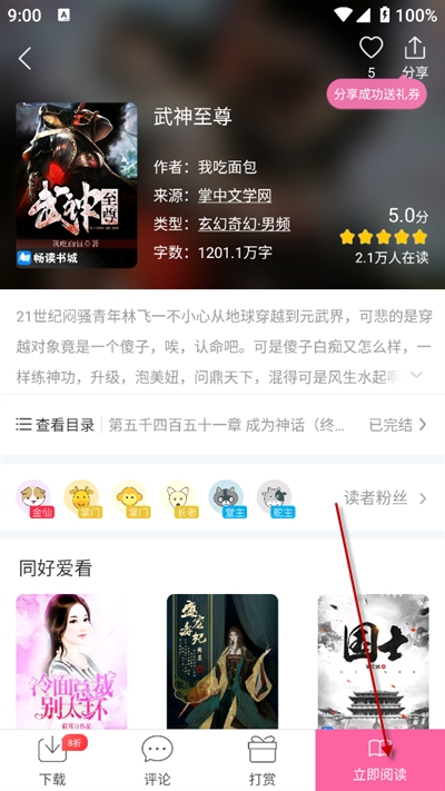 3、找到喜欢的书籍后,点击立即阅读按钮;