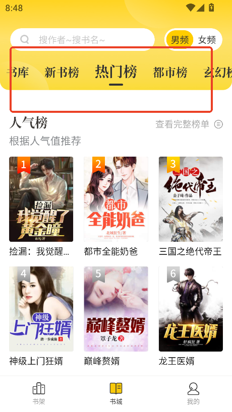 进入书城后,可在分类栏目中查找感兴趣的小说类别。