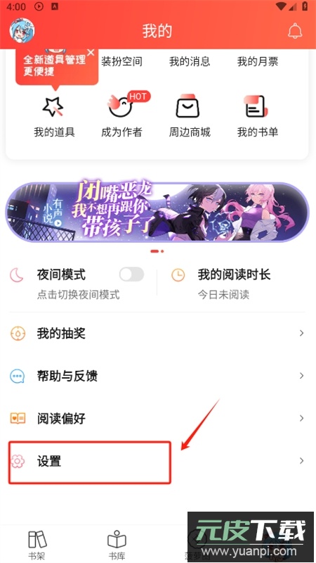 1、进入应用后,在个人中心页面找到并点击【设置】选项。