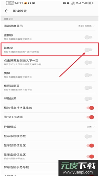 2. 在设置列表中找到“繁体显示”选项,将其关闭即可切换为简体中文界面。