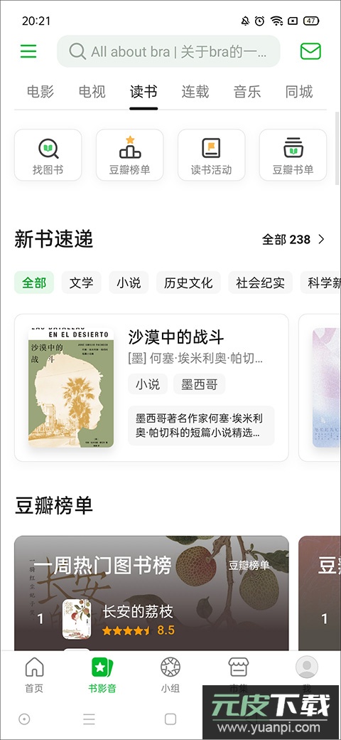 1、拥有极其丰富的书籍、影视与音乐资料库,你可以随时查阅其他用户的评分与评论,还能浏览多种由社区生成的特色片单、书单和歌单;