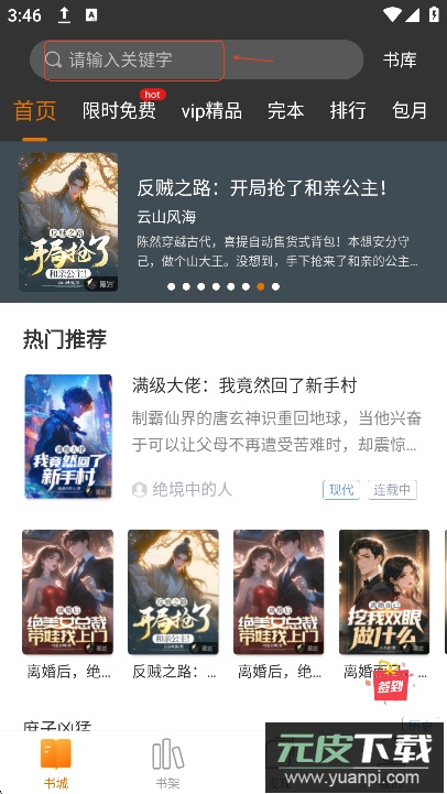 完成注册后,用户可在首页的搜索框内直接查找感兴趣的小说作品