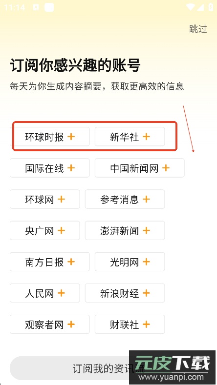 打开app后,用户可以订阅日常关注的新闻资讯号。