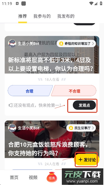 用户还可以进入“说两句”板块参与社区互动,针对事件发表个人观点或发起讨论。