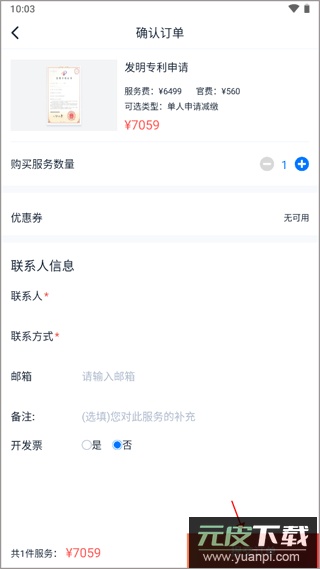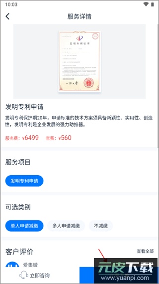 2、选择对应缴费类型,过程中可以先咨询发明专利申请相关的各类问题,确认所有信息后点击立即下单按钮;