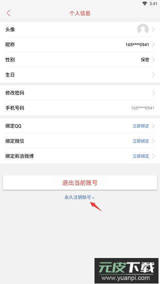 2、点击“永久注销账号”