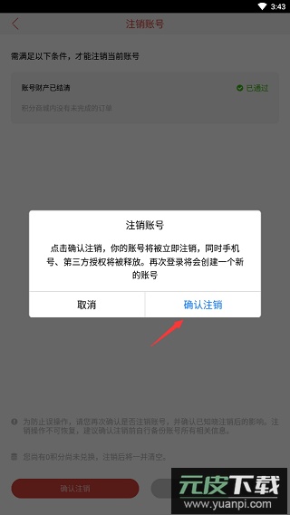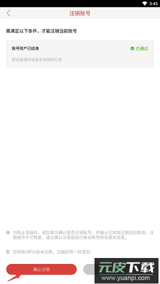 5、注销账号:等待条件满足通过,点击“确认注销”
