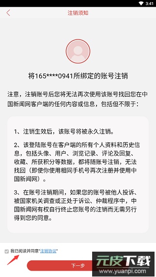 3、点击“我已阅读并同意"注销协议"”