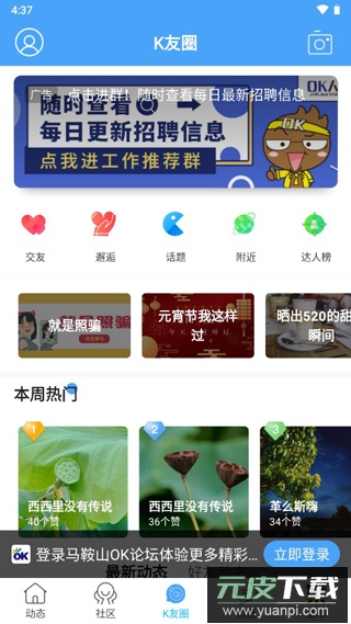 4、k有圈功能类似于社交平台的朋友圈,方便用户发布动态并进行互动。