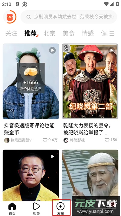 1、打开有柿官方版,点击页面底部的发布按钮。