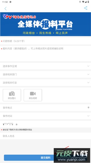 3、按页面提示填写报料的具体内容,以及对应的事件发生时间、地点等相关信息,确认信息无误后点击提交报料按钮即可;