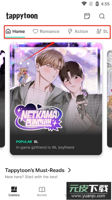 Tappytoon安卓版是一款专注于提供丰富漫画与小说资源的移动阅读应用。该平台汇集了大量热门韩国漫画及文学作品,并构建了读者互动社区,便于爱好者交流分享。各类精彩内容持续实时更新,结合多样榜单推荐,有效避免内容匮乏,在线阅读体验流畅便捷。