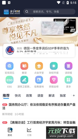 1、在本站下载该软件并打开,进入首页资讯的页面,可以查看每天推荐的资讯、专题、专刊等等权威的财经信息