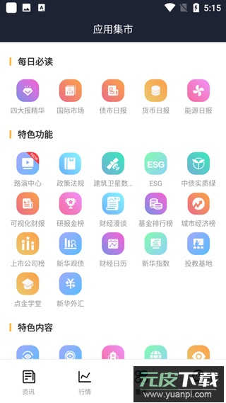 3、点击集市,拥有每日必读、特色功能、特色内容、财经视频、合作功能等等板块,每个板块都拥有许多不同的功能