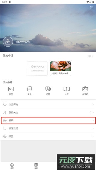 首先在个人界面点击投稿选项;