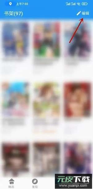 2、进入书架页面后,点击右上角编辑按钮。