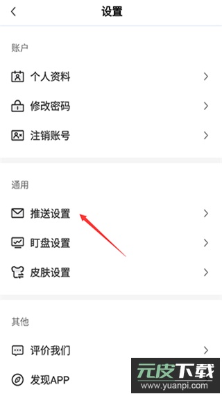3、在设置菜单中即可进行推送管理。