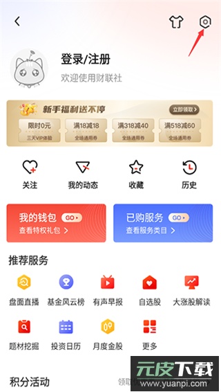 2、进入个人中心页面,找到右上角的设置选项。