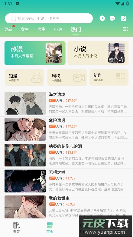 2、可以点击热门板块查看漫画人气榜单,了解其他用户正在观看的内容。