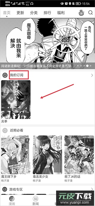 4、订阅成功后,返回应用即可在书架看到该漫画