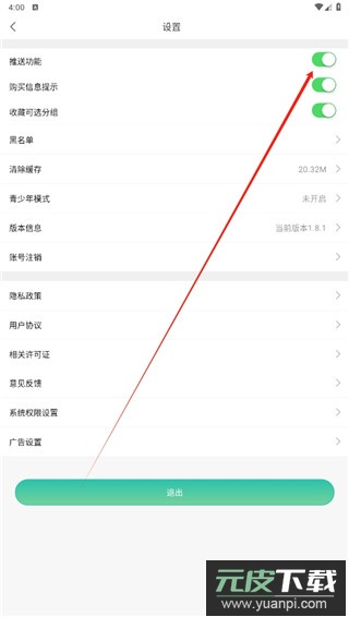 3、进入设置后,找到推送功能选项,点击关闭即可