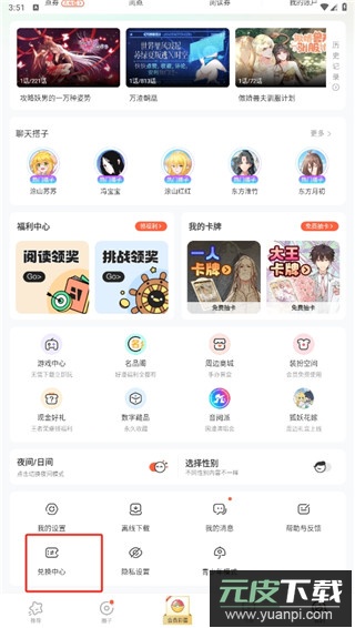 在个人中心里,找到“兑换中心”入口并点击进入。