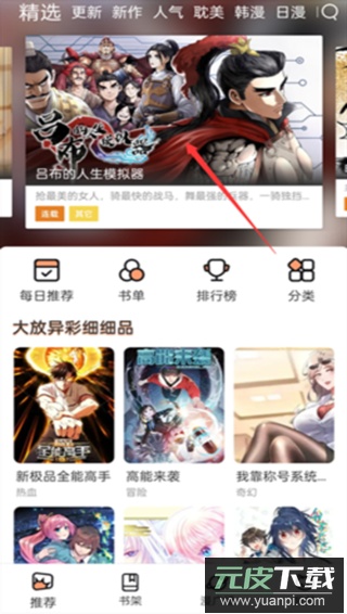 1、首先下载并打开软件,点击选择想看的漫画;