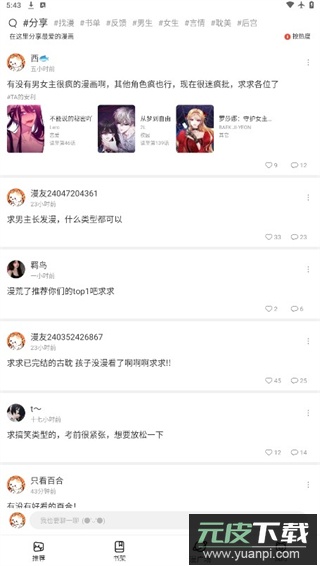 5、点击下方漫广场,能看到漫友最新发布的动态,用户可以在此分享交流。