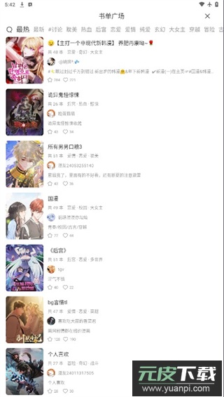 3、点击主页上方书单图标,可查看其他用户创建的热门书单,每个书单收录同类型漫画,输入想看的类型即可发现多部相关作品。