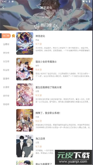 4、点击主页上方排行榜,可以浏览各榜单中最火爆的漫画。