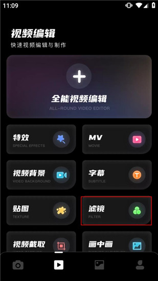 3、也可在视频剪辑功能中找到并使用滤镜效果。