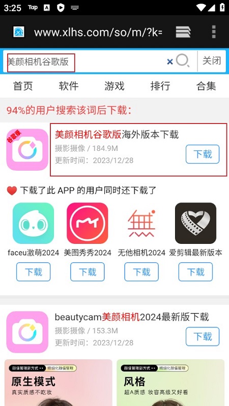 1.先下载并安装美颜相机国际版应用程序,大家可以在本站直接搜索“美颜相机国际版”获取安装包