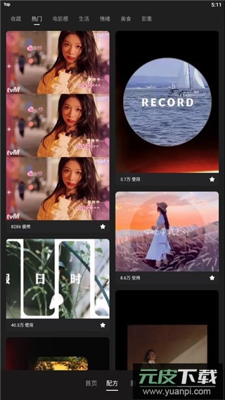 2.进入配方栏目可浏览热门视频模板,点击即可一键套用同款效果;