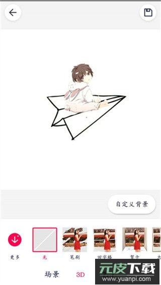 6、若想将抠出的人物放置到其他背景中,可以点击右下角的自定义背景按钮;重新选择一张背景图,调整人物位置与大小,满意后记得点击右上角保存。