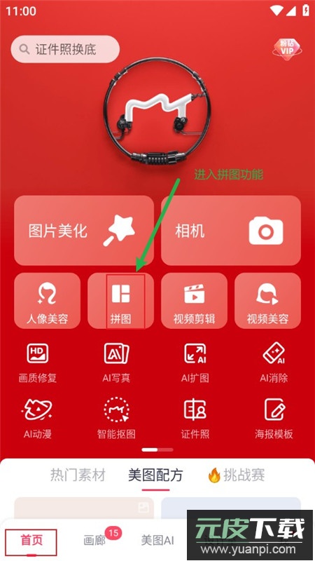 1.打开美图秀秀应用,在首页功能栏找到并选择“拼图”功能。
