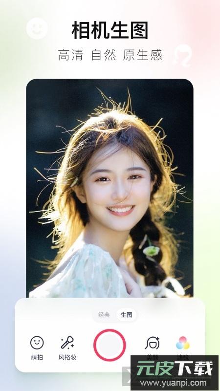 一键就能实现美体塑形、智能美颜、大眼瘦脸、水光磨皮、精致妆容等效果,让你拍的每一张照片都足够好看,清新、甜蜜、高冷等各类滤镜风格随心切换。