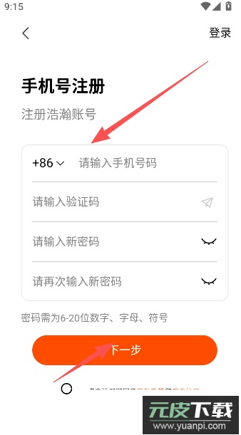 4、通过手机号码与短信验证码的方式完成注册流程。