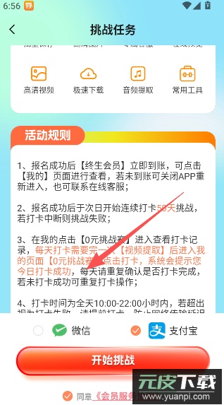 3、仔细阅读完整活动规则,通过微信或支付宝支付活动费用,随后在指定时间内完成任务,即可永久解锁软件会员使用权限。