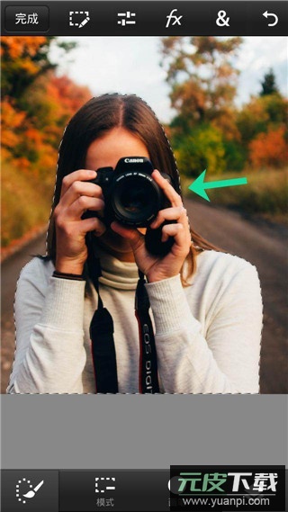 5、画面会覆盖红色遮罩,用手指涂抹边缘泛白或发丝细节处,软件会自动优化选区,完成后确认;
