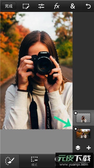 3、通过双指缩放调整视图大小,选用合适的笔刷进行精细选取;