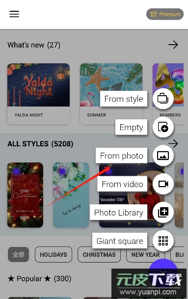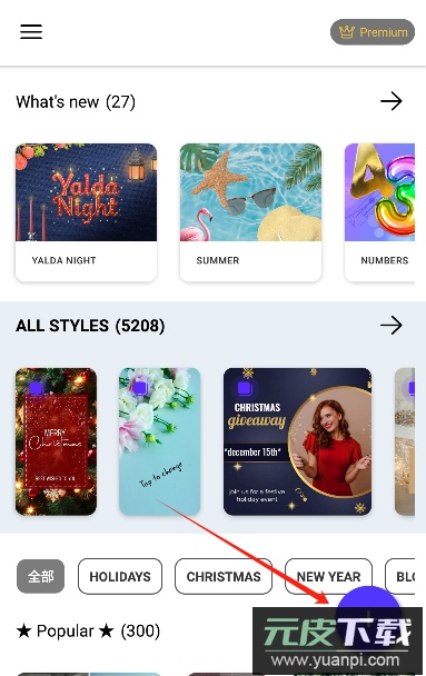 1、打开软件可以看到丰富的素材资源,点击右下角的添加按钮开始创作。